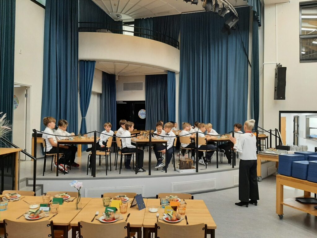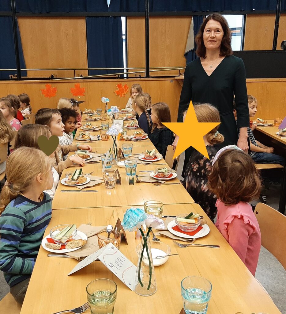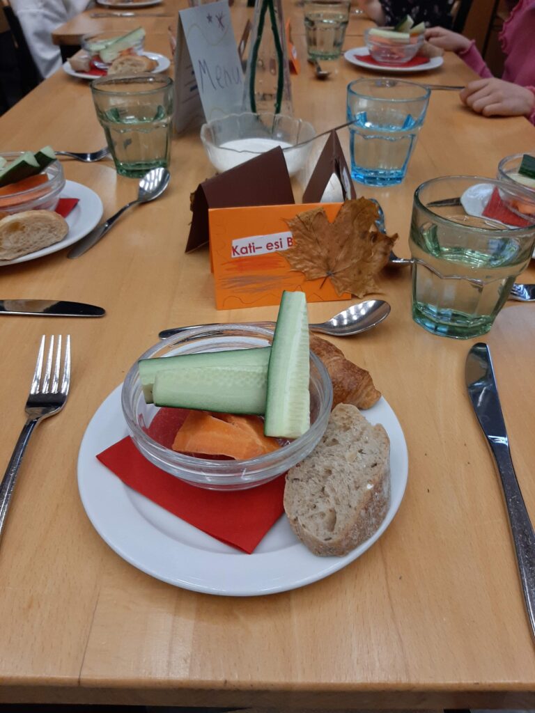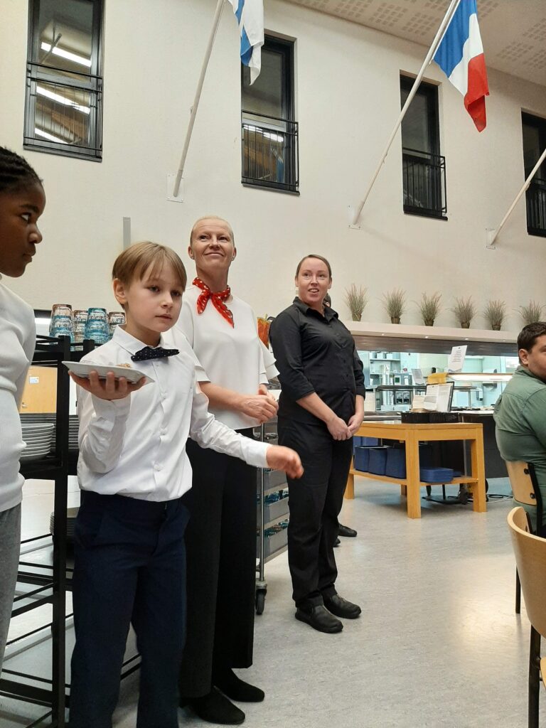Marraskuun ensimmäinen viikko päättyi loisteliaasti, kun 4A-luokka tarjoili ”Bien Manger” -aterian esikoululaisille ja 2. luokille. Herkullinen ranskalainen ateria koostui juureslautasesta alkupalana, jauhelihaperunasoselaatikosta pääruokana ja omenapiirakasta jälkiruokana. 4A-luokan tarjoilu oli ammattimaisen taidokasta ja asiakkaat käyttäytyivät hienosti! Kiitos myös keittiöhenkilökunnalle!